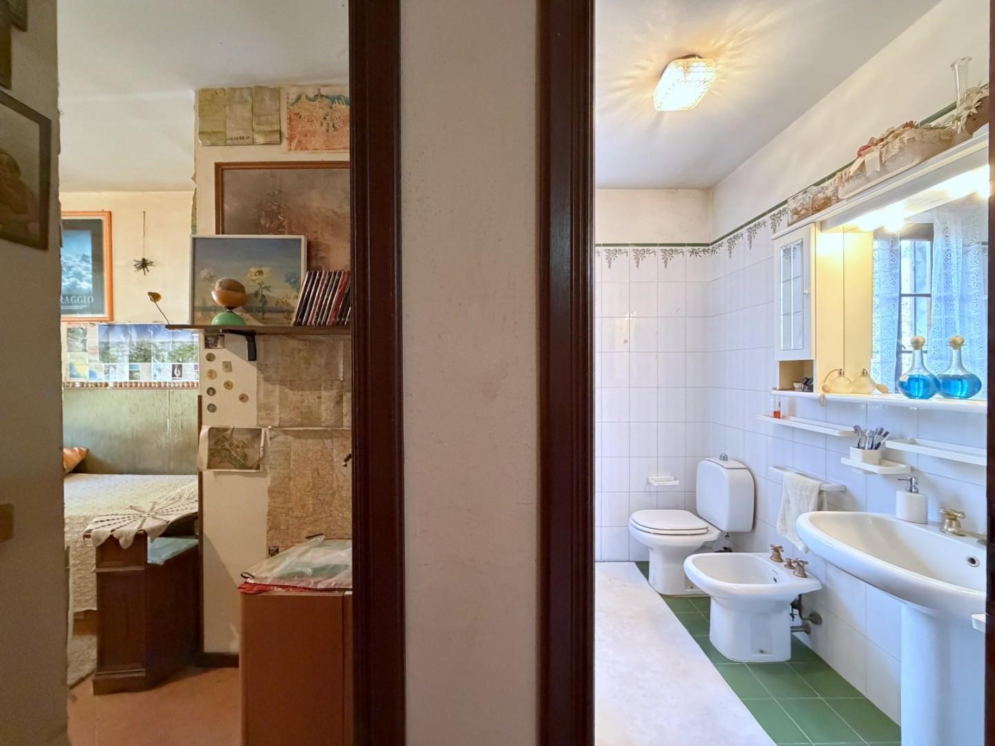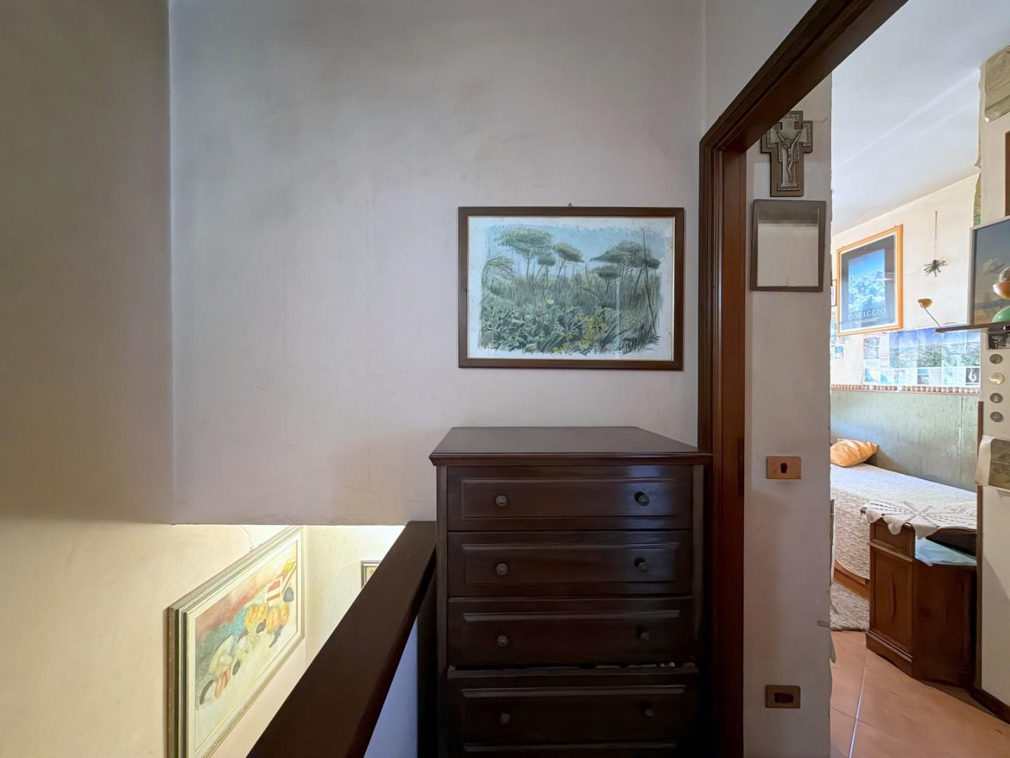 L’immobile si sviluppa al piano terra con una zona giorno accogliente composta da soggiorno impreziosito da camino e tinello; nelle immediate vicinanze troviamo un pratico cucinotto. A servizio del piano, prima della scala che conduce al livello superiore, è presente un primo bagno finestrato con vasca.