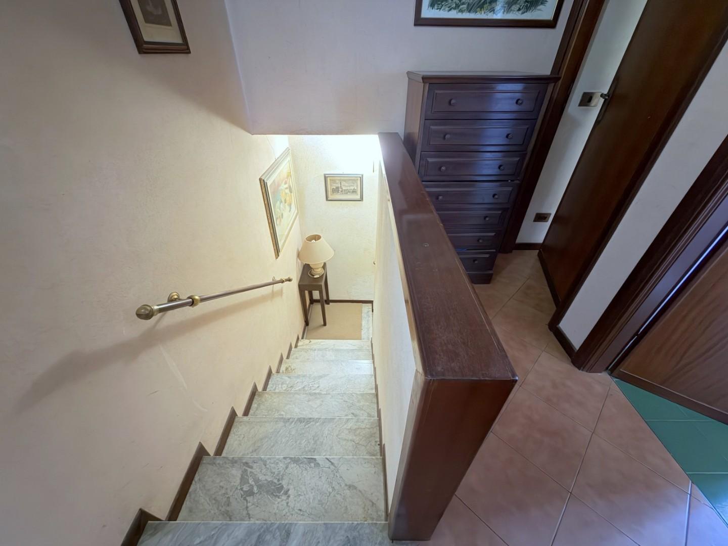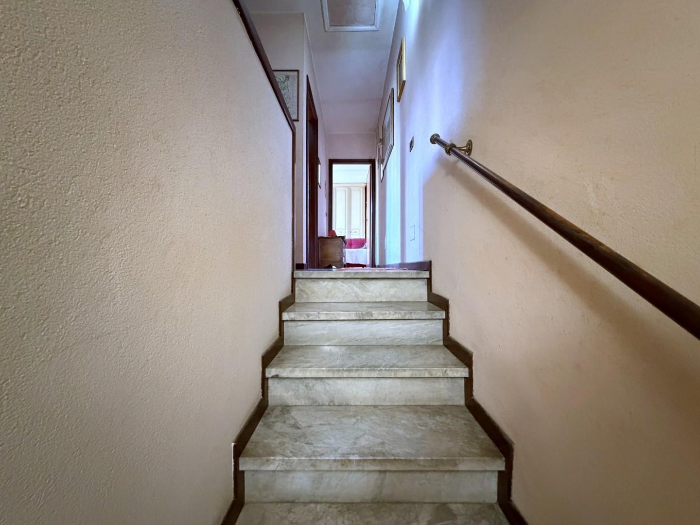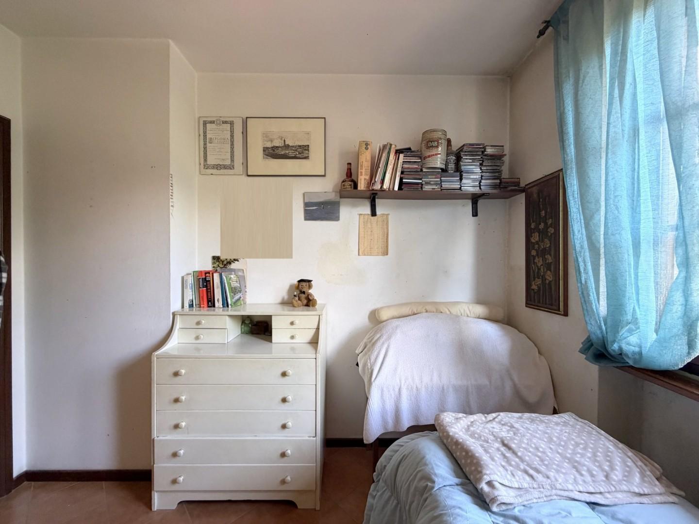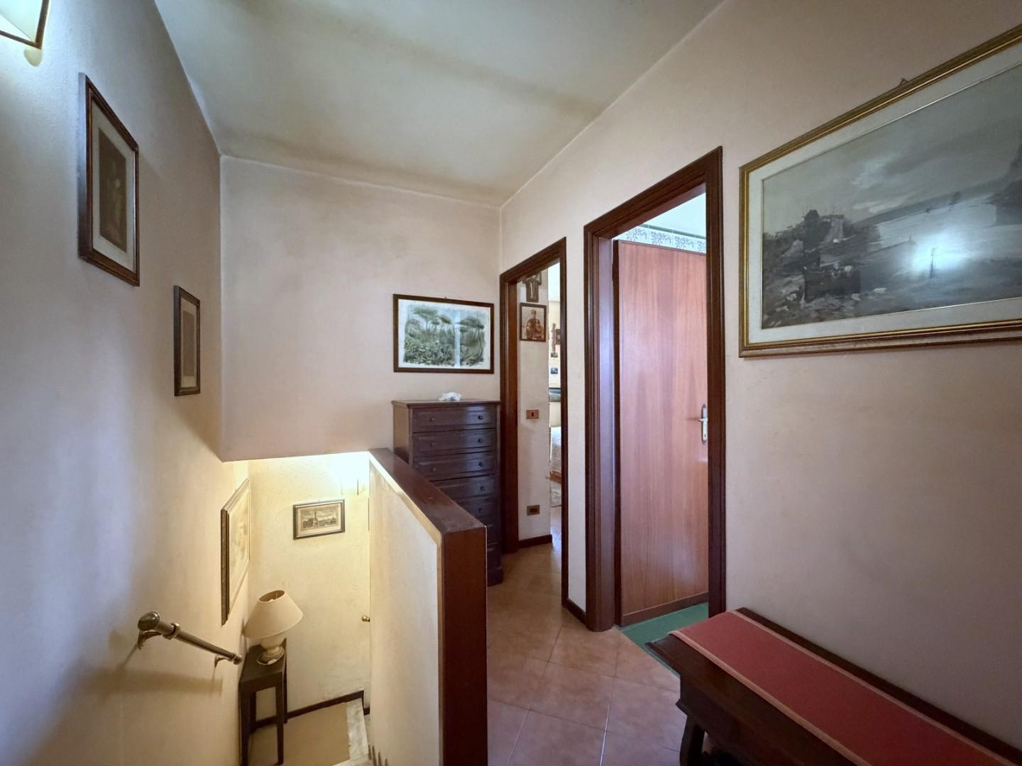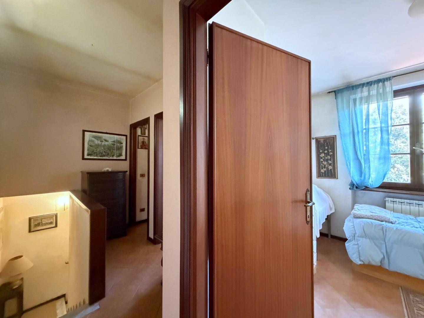 Il piano primo è interamente dedicato alla zona notte e si compone di una camera matrimoniale e due camere singole, tutte ben illuminate. Completa il piano un secondo bagno con doccia.