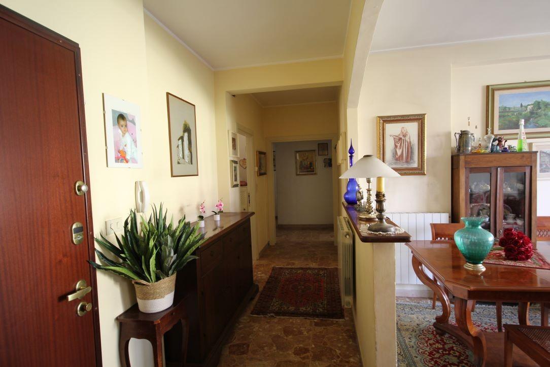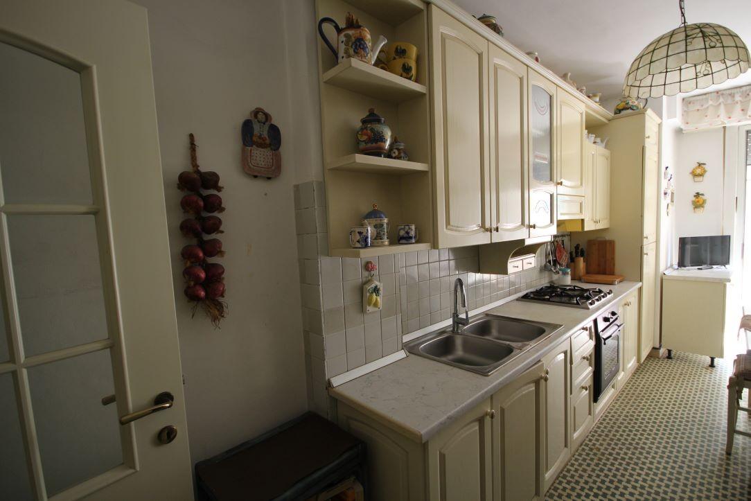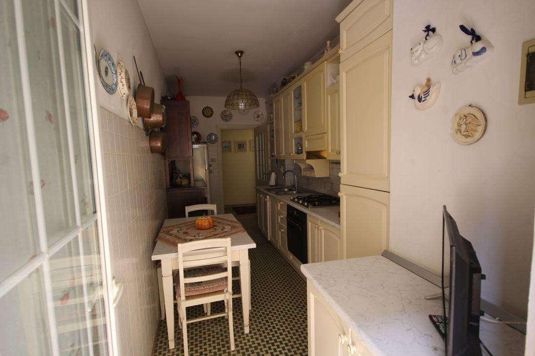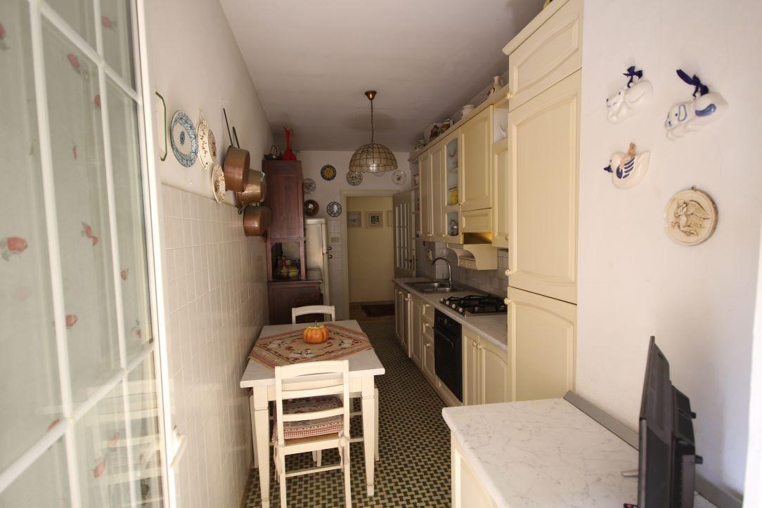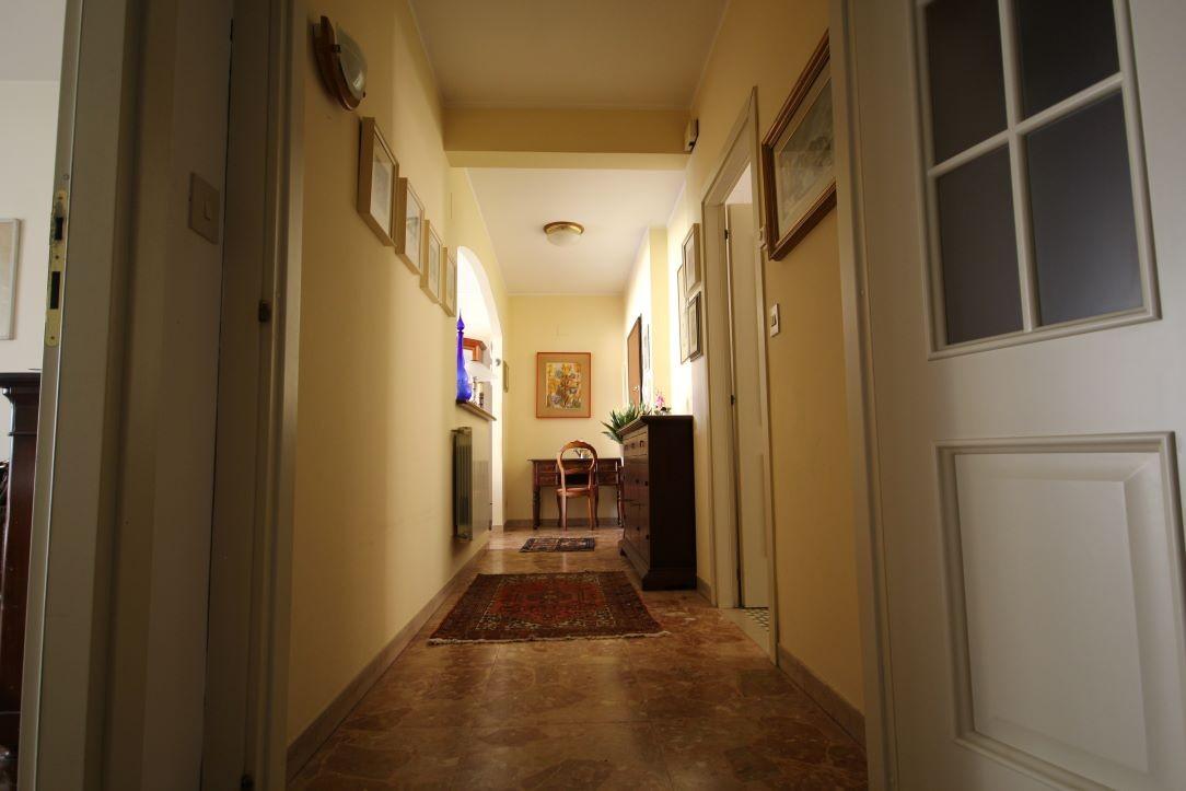 Sulla sinistra un corridoio conduce alle stanze posteriori, alla cucina e alla camera da letto, entrambe con accesso alla stessa terrazza. Si tratta di uno spazio funzionale e pratico, dotato di un lavatoio, con affaccio sugli edifici circostanti.